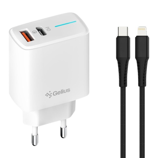 Мережевий зарядний пристрій Gelius Radiance GP-HC058 (1Type-C+ 1USB-A)(PD/QC3.0/PPS/Super VOOC) 25 Watt + кабель G-Power Type-C to Lightning White